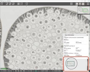 When viewing my slide scans, is there a way to zoom into the overview image of the slide to see the region that was scanned?